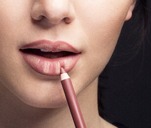הכיני עם באלם לחות לשפתיים. ציירי קו חיצוני עם עיפרון שפתיים בגוון כהה בטון אחד מגוון השפתון. ציירי 3 קווים אנכיים בשפה התחתונה. אחד במרכז ושניים נוספים מכל צד. הניחי שפתון בטפיחות מעל עד שהקווים נעלמים.