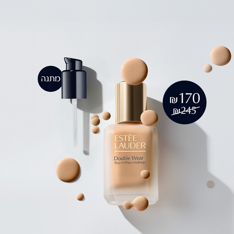 בתוקף עד ה- 28.2.26 או עד גמר המלאי | תקף על מייק-אפ Double Wear Stay In Place החדש בגודל מלא | מלאי מינ' 1,500 יח' | ללא כפל הנחות וקופונים | המתנה אינה ניתנת להחזרה או החלפה